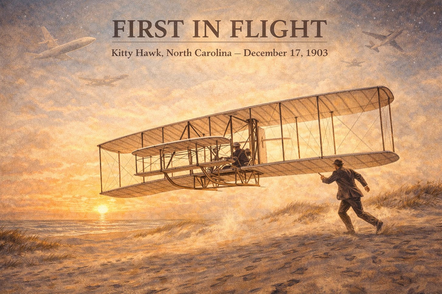 First in Flight I’ve lived in Carolina long enough to stay, And I think I’ve earned the right to say— First in Flight is more than a line, It’s a story that’s yours, and now it’s mine. Two brothers on a cold December shore, Built something the world had never seen before. Not drifting with the wind, not tossed about, But turning on purpose—leaving all doubt. The critics laughed, “If God meant you to go, He’d have given you wings, you’d already know.” But God gave us something far more true— A mind that imagines, and hands that do. Eight hundred fifty-two feet became the sky, Then cities, then nations, then stars way up high. And from that height, we learned to see, The beauty of Earth, in its majesty. But not every flight is wood and wire— Some are born of hope, some burn with fire. Each act of courage, each word you speak, Is the lift your restless soul will seek. So bank. Climb. Turn on the air. The wings you need are already there. God placed them deep—heart, mind, and spine. Now take the wind… and make it yours and mine.